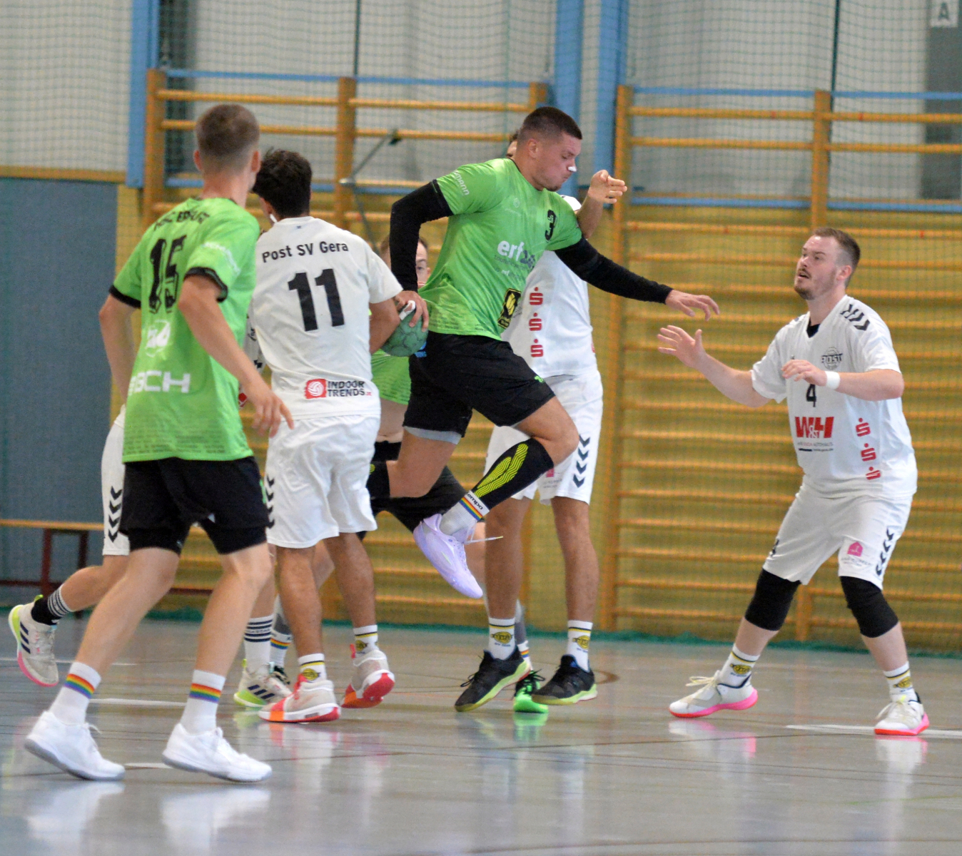 Erfurt einen klaren Auswärtssieg eingefahren. Von Beginn an waren die Geraer hellwach und legten in der kleinen Erfurter Halle einen Traumstart hin. Mit konzentrierter Abwehrarbeit und schnellen Angriffen setzten sich die Postler Stück für Stück ab.